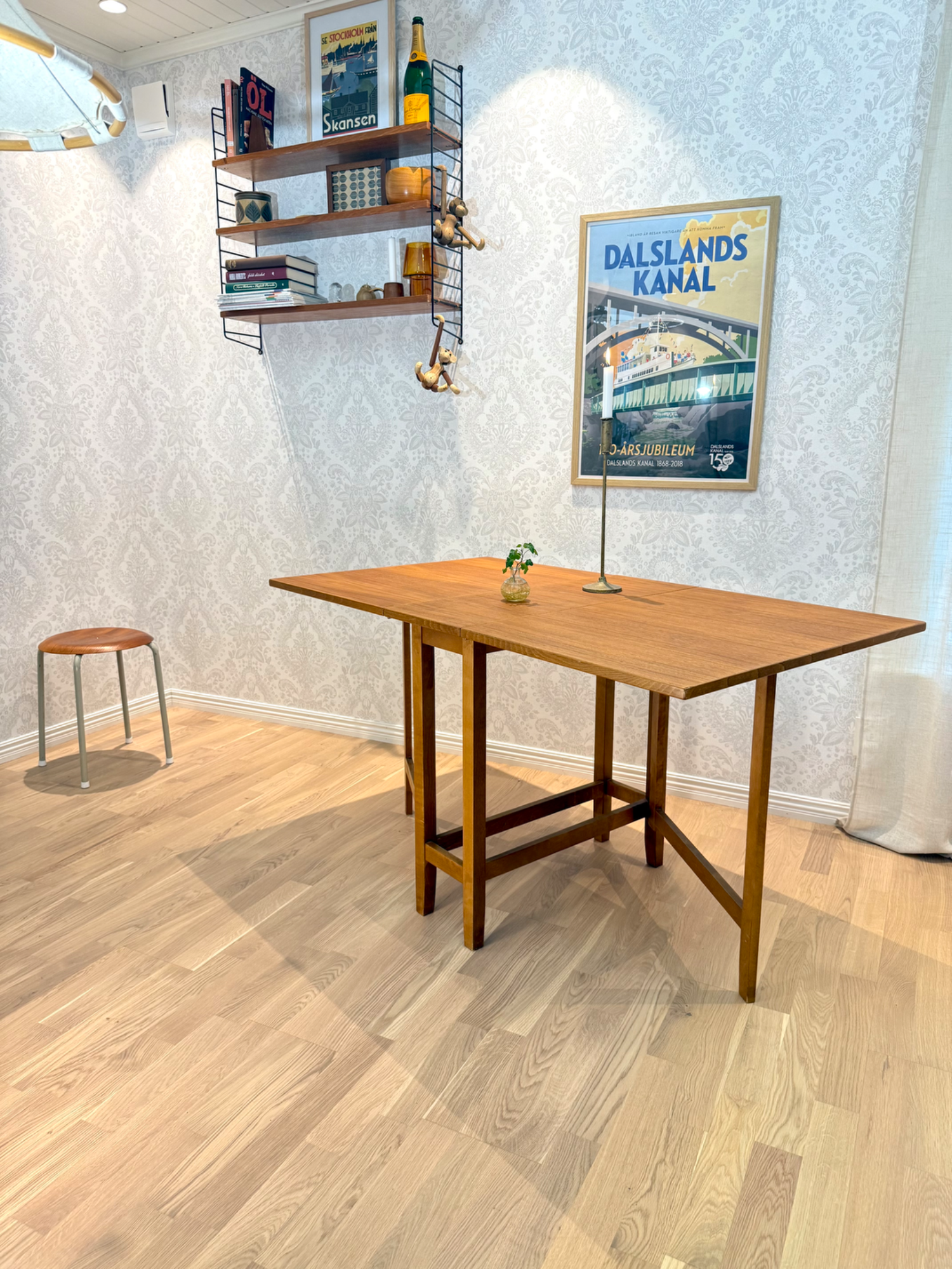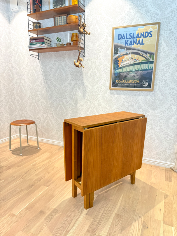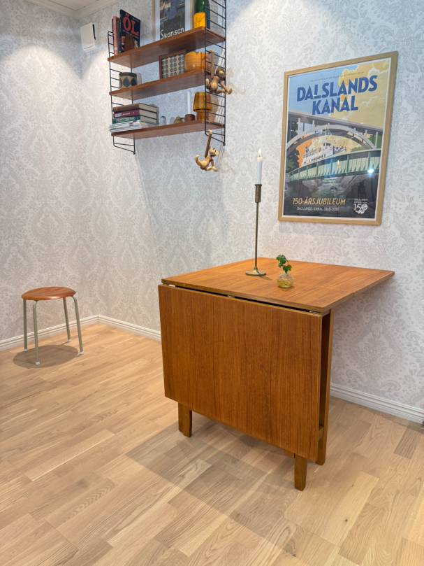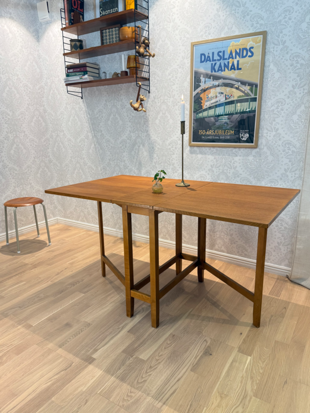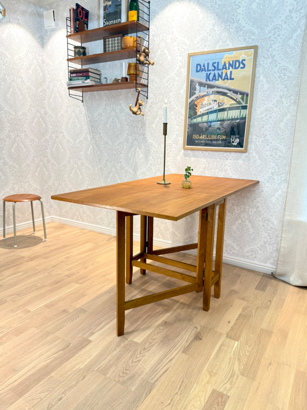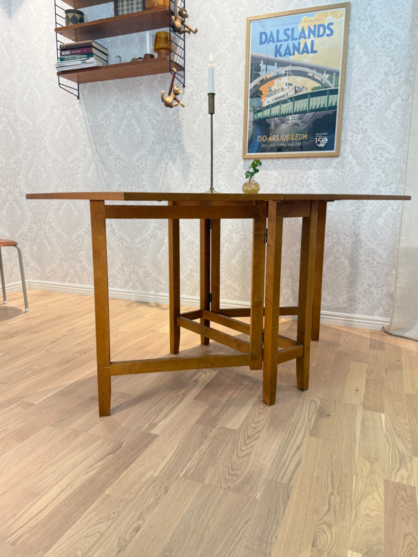 Praktiskt slagbord/ klaffbord för den lilla ytan, här kan man välja ha det helt utfällt eller ena klaffen. Tar liten plats när man fäller ihop de.
