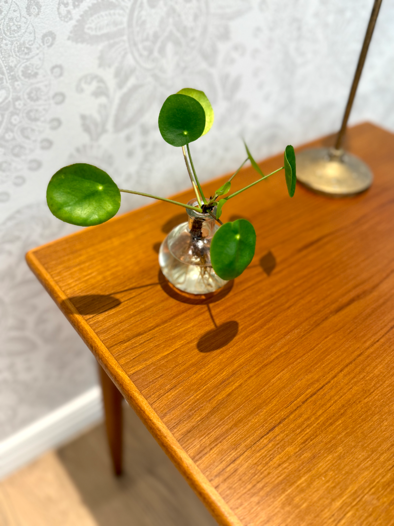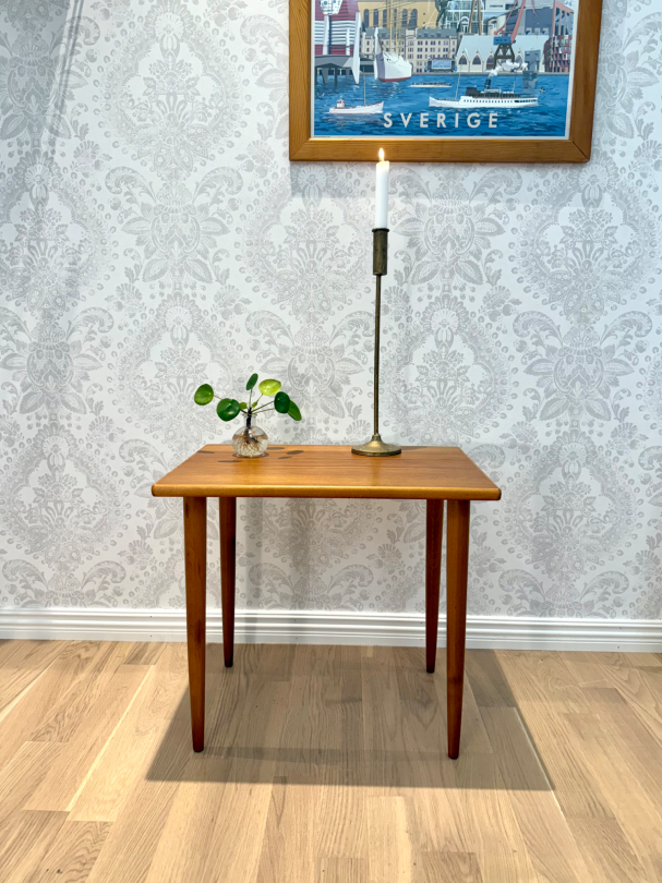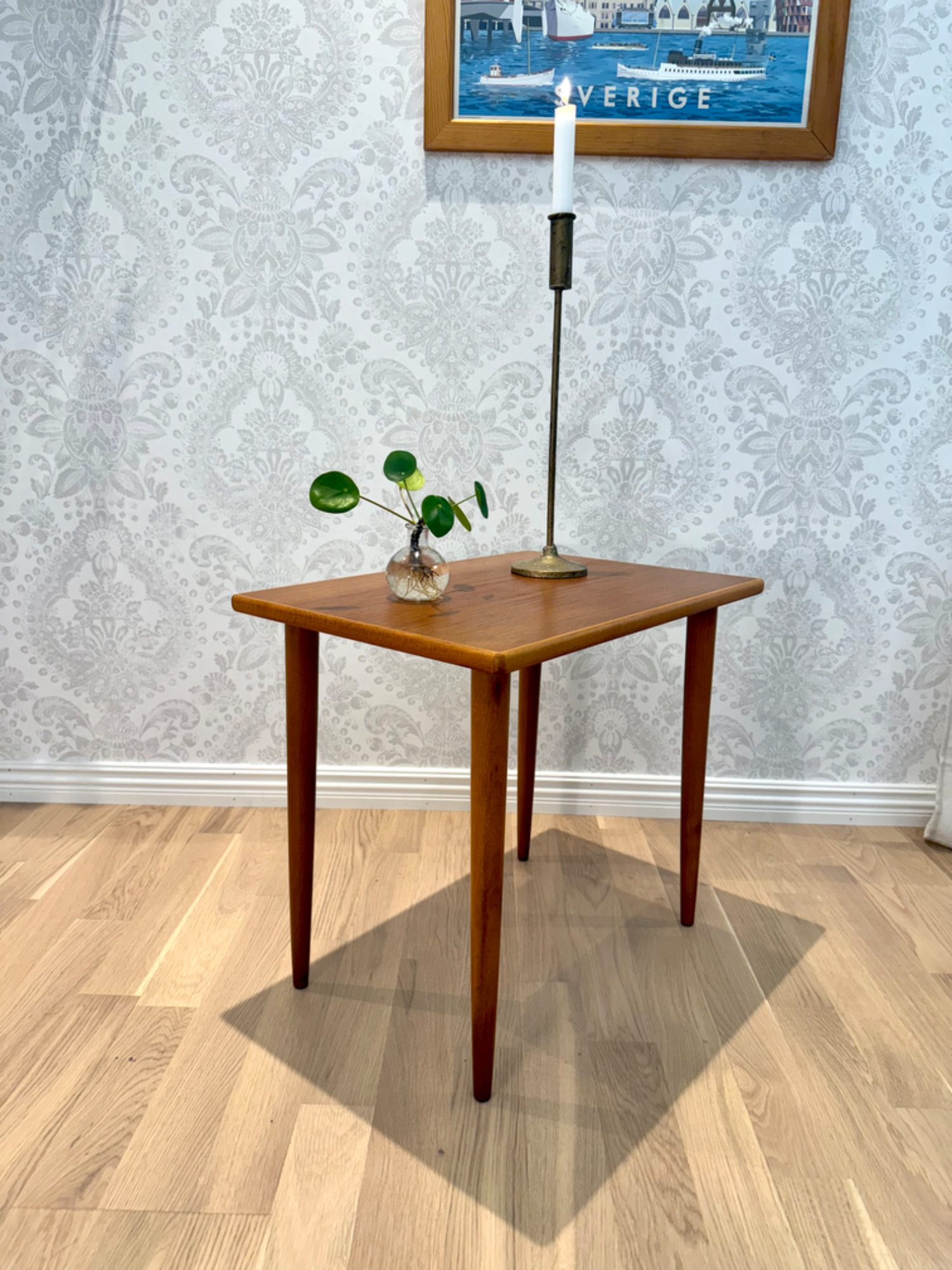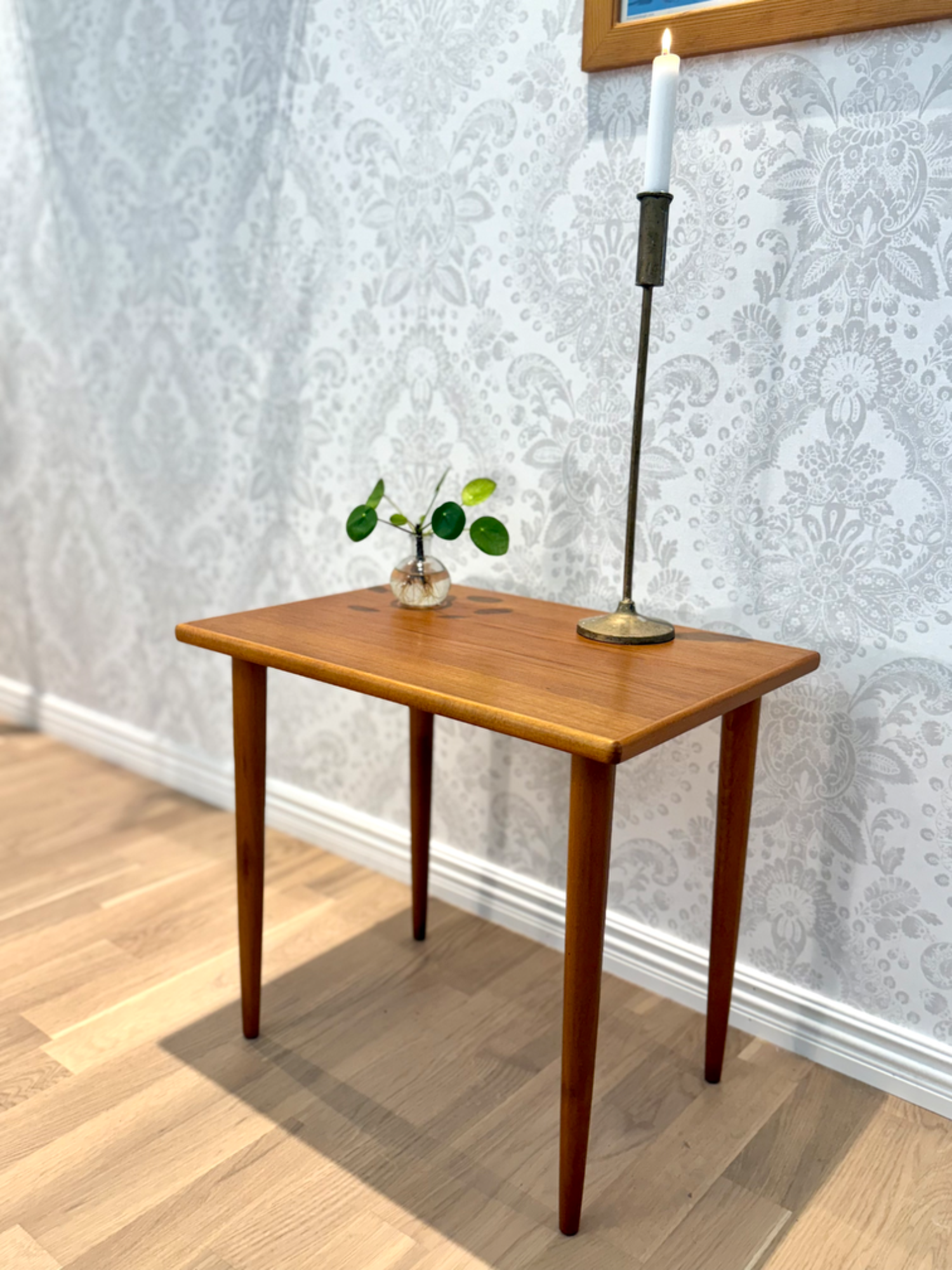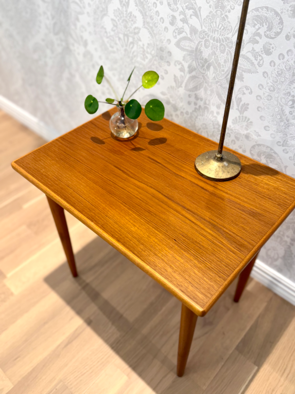 Perfekt sidebord/ lampbord i teak, enkelt att placera i hemmet.