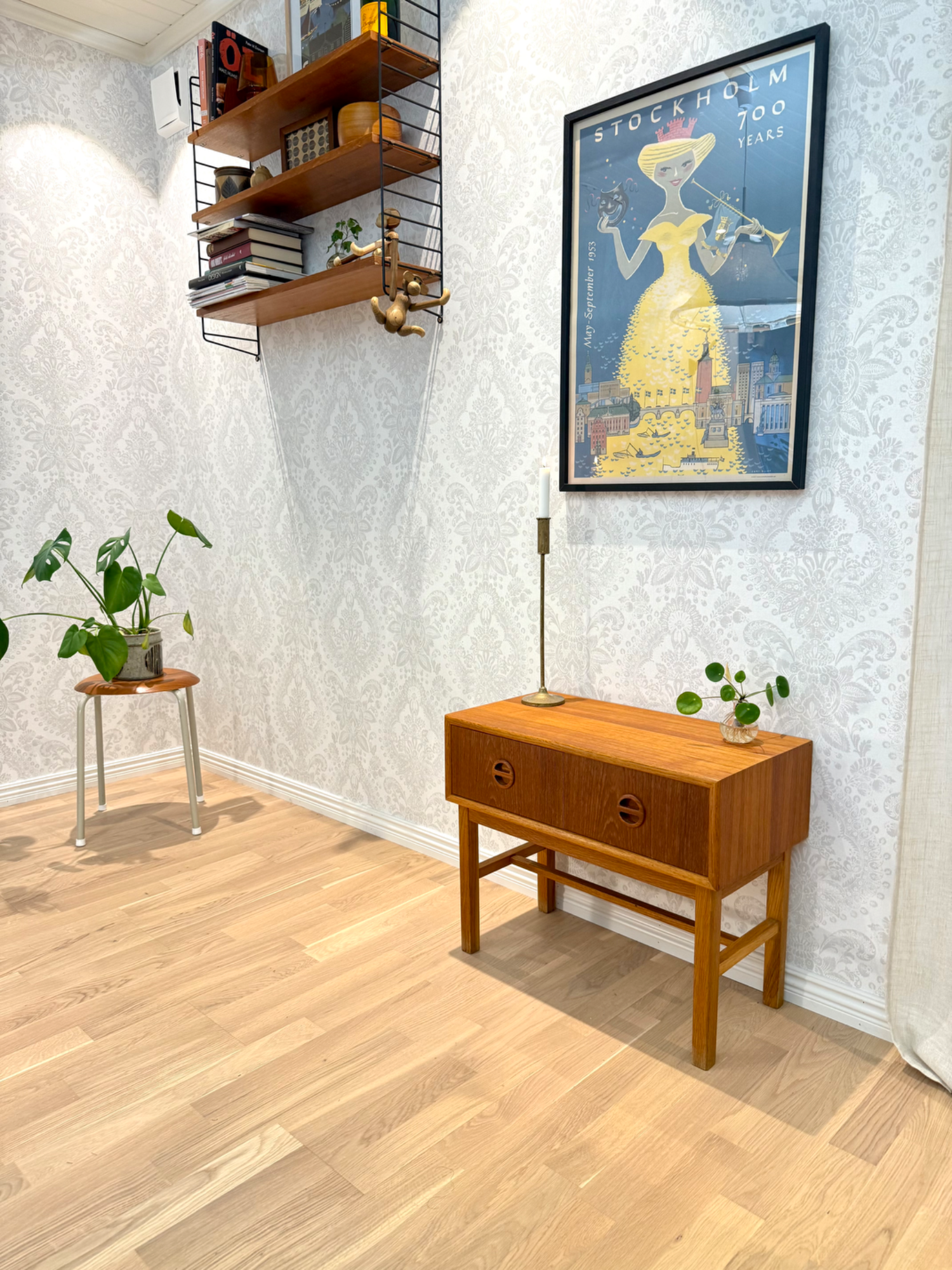 Skick: Väldigt fint skick, toppskivan är nyslipad och behandlad med bivax. Kan finnas något spår av vardagslitage, se bilder.