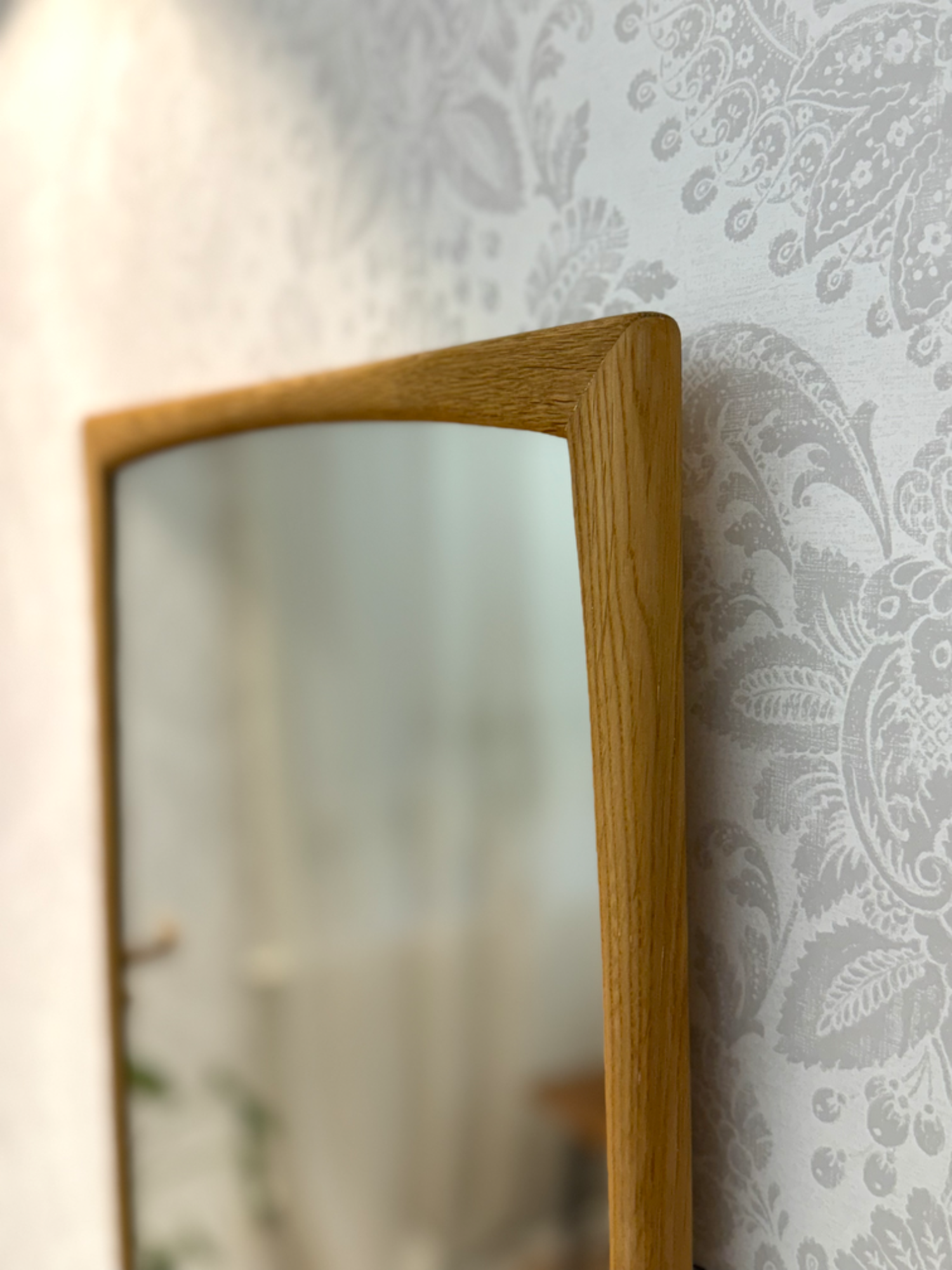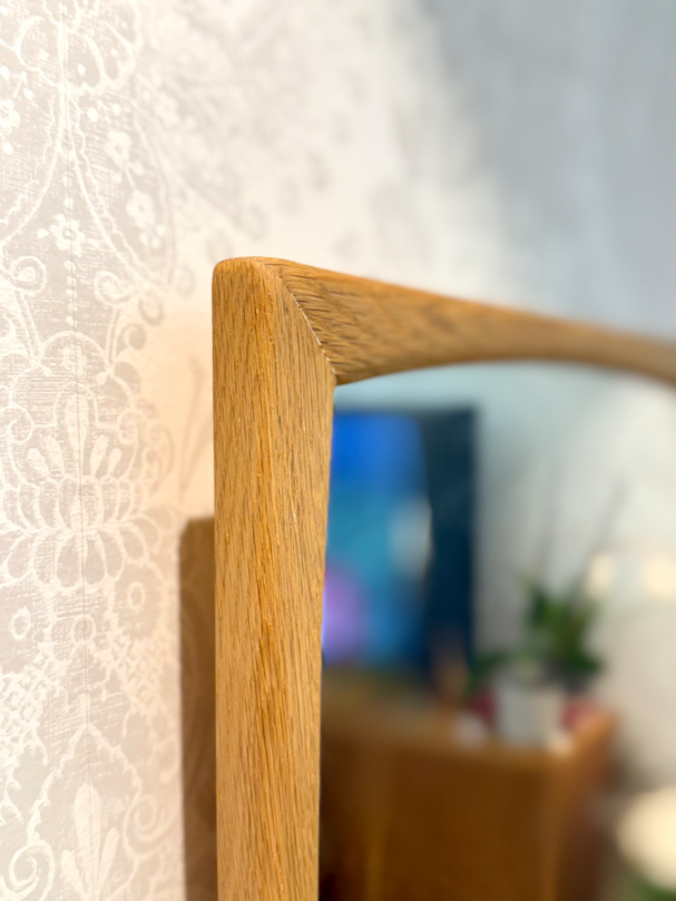 Spegel i ek med mjuka avfasad kant.