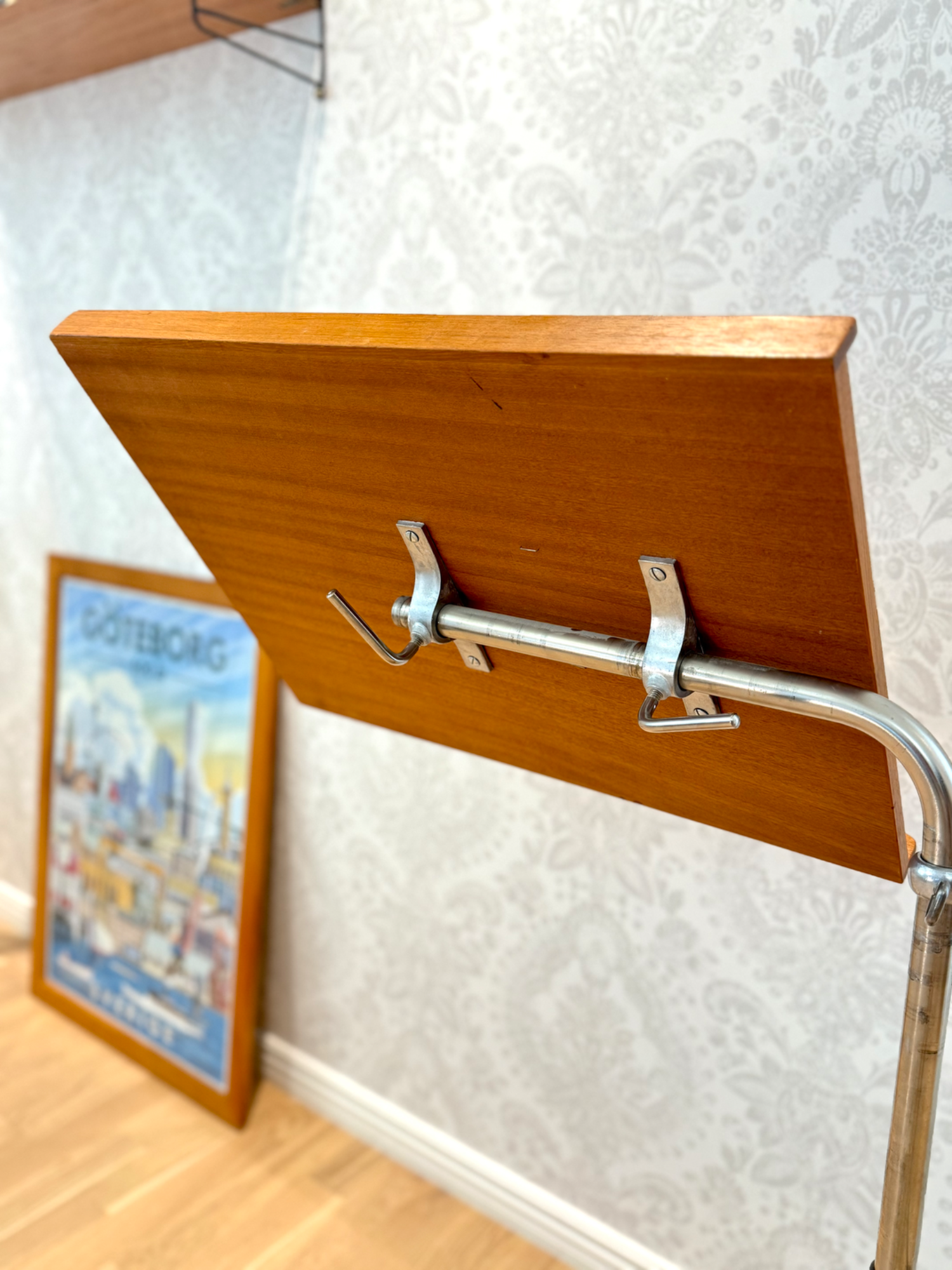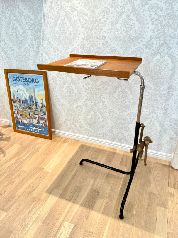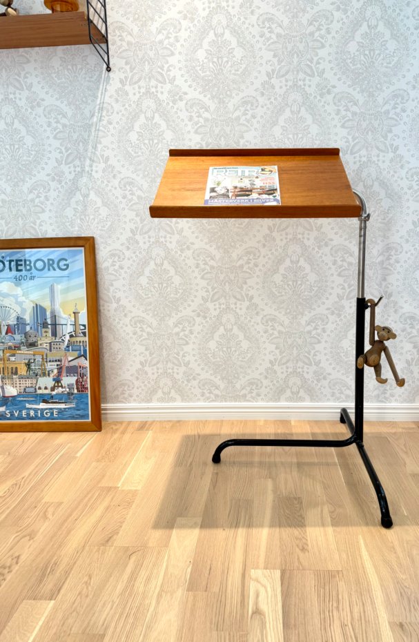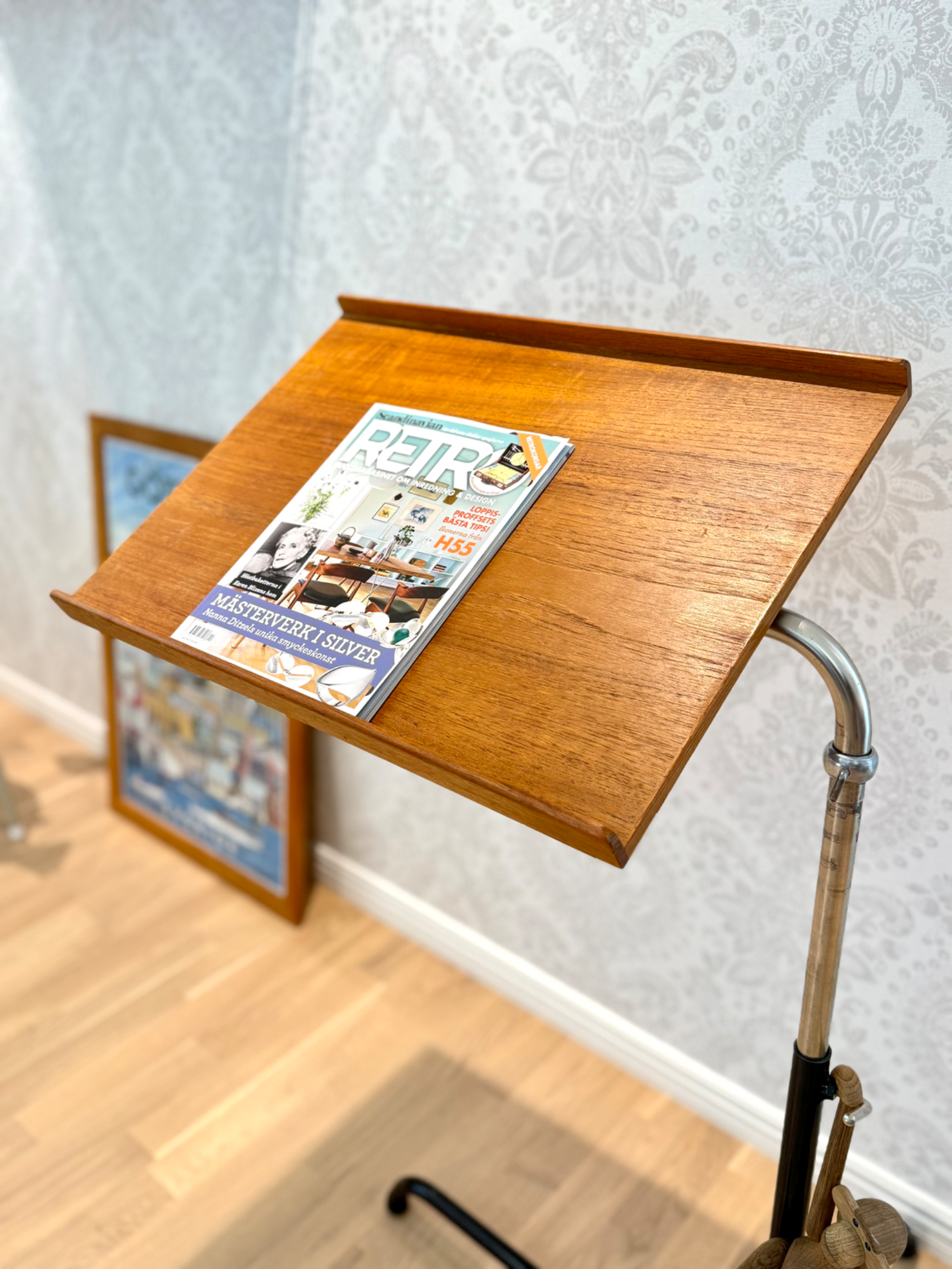 Teak läs/ skrivbord med vippfunktion av skivan samt ställbar önskad höjd. Perfekt till soffan/ sängen.