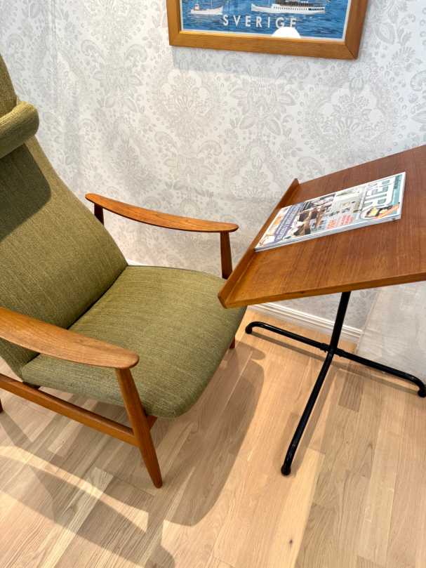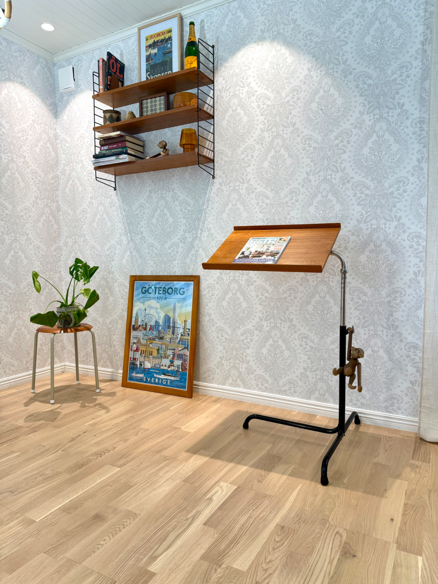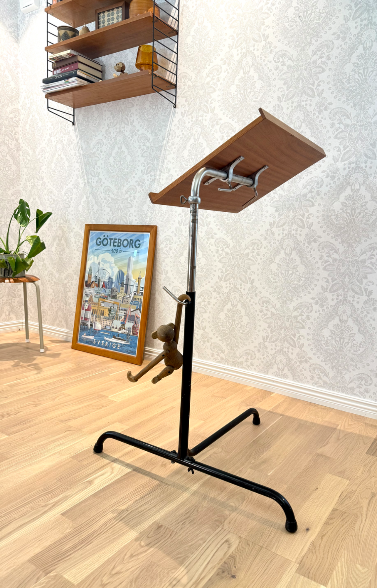 Teak läs/ skrivbord med vippfunktion av skivan samt ställbar önskad höjd. Perfekt till soffan/ sängen.